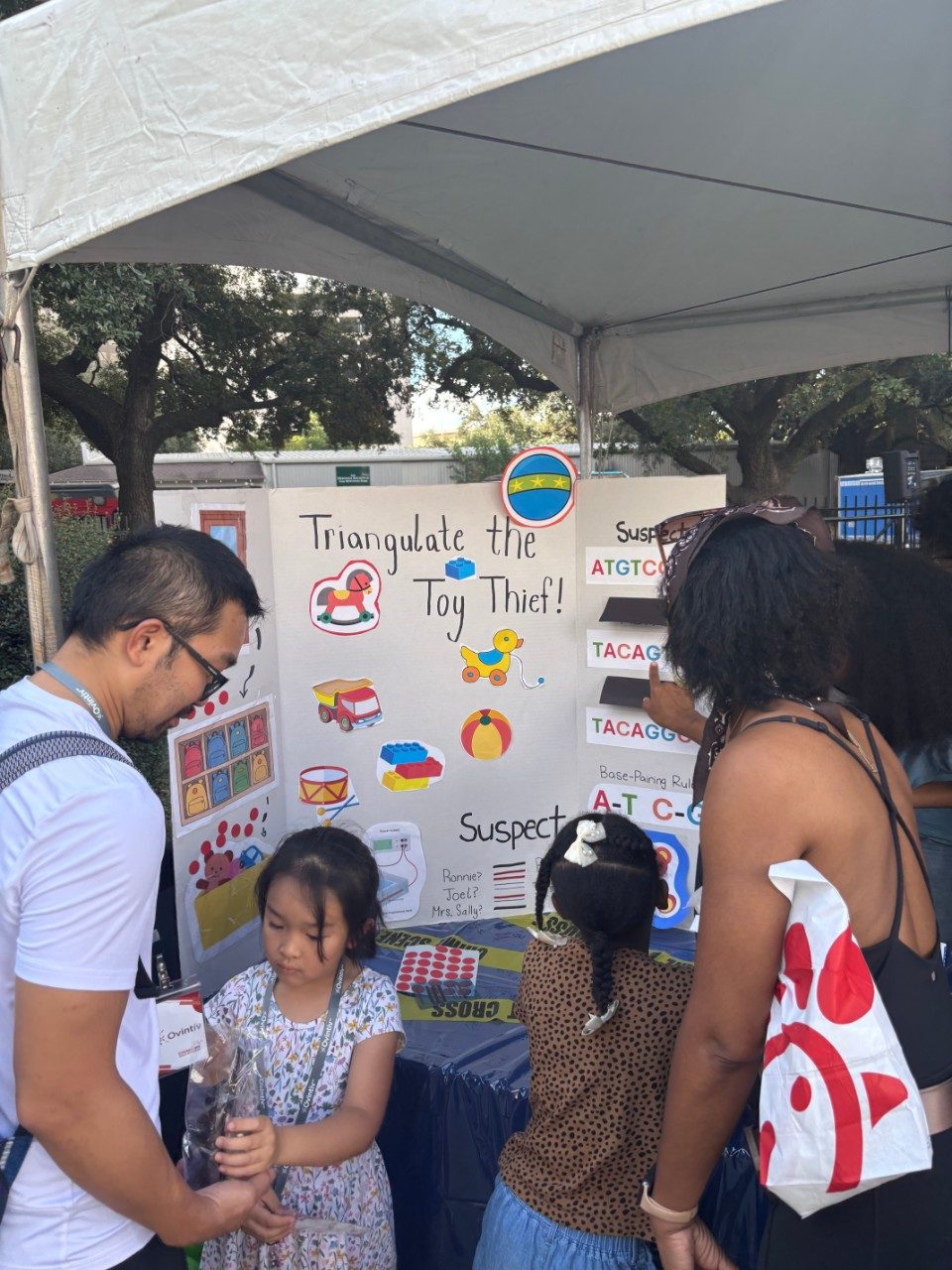 Attendees explored a DNA demonstration that highlighted how DNA is collected, analyzed, and matched to solve scientific mysteries. Equipped with this knowledge, audience members participated in a fun mini-forensics challenge, applying what they learned to identify the “culprit” in a mystery scenario—an experience that quickly became a crowd favorite.
