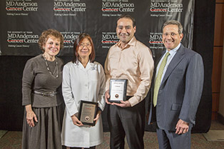 The University of Texas MD Anderson Cancer Center has awarded Alejandro Contreras, M.D., Ph.D., assistant professor of Pathology, and Yun Wu, M.D., Ph.D., associate professor of Pathology, the inaugural Shirley Stein Scientific Endowed Research Award. Each of the clinicians will receive a $12,000 cash prize through a $600,000 endowment made by Gary Stein, the Stein family and Regina Rogers. Stein and Rogers are members of the MD Anderson Cancer Center Board of Visitors (BOV). The awards will fund: