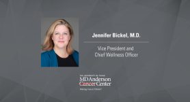 “Supporting wellness at MD Anderson means supporting the people who make a difference every day for our patients and their families,” said Shibu Varghese, senior vice president, people, culture & infrastructure at MD Anderson. “This initiative is built on the understanding that a well-supported team leads to even better care and advancements in cancer treatment, and we are pleased to have Dr. Bickel joining to help us advance these efforts.”