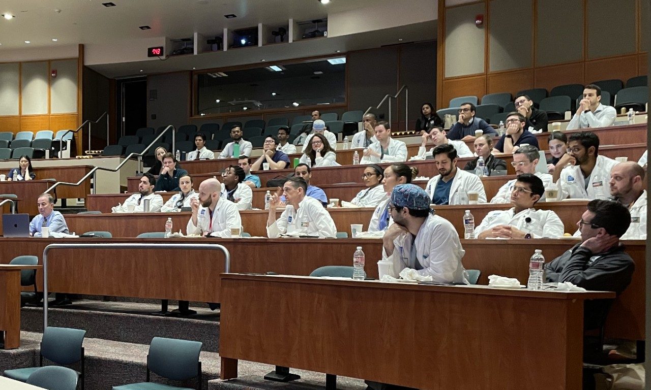 Residents, fellows and faculty engage during Dr. Evans' lecture.